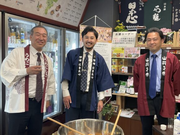 造りの忙しい中、大勢の蔵元も来てくださり、鏡開きの樽酒やふるまい酒で、大盛況のひとときとなりました!